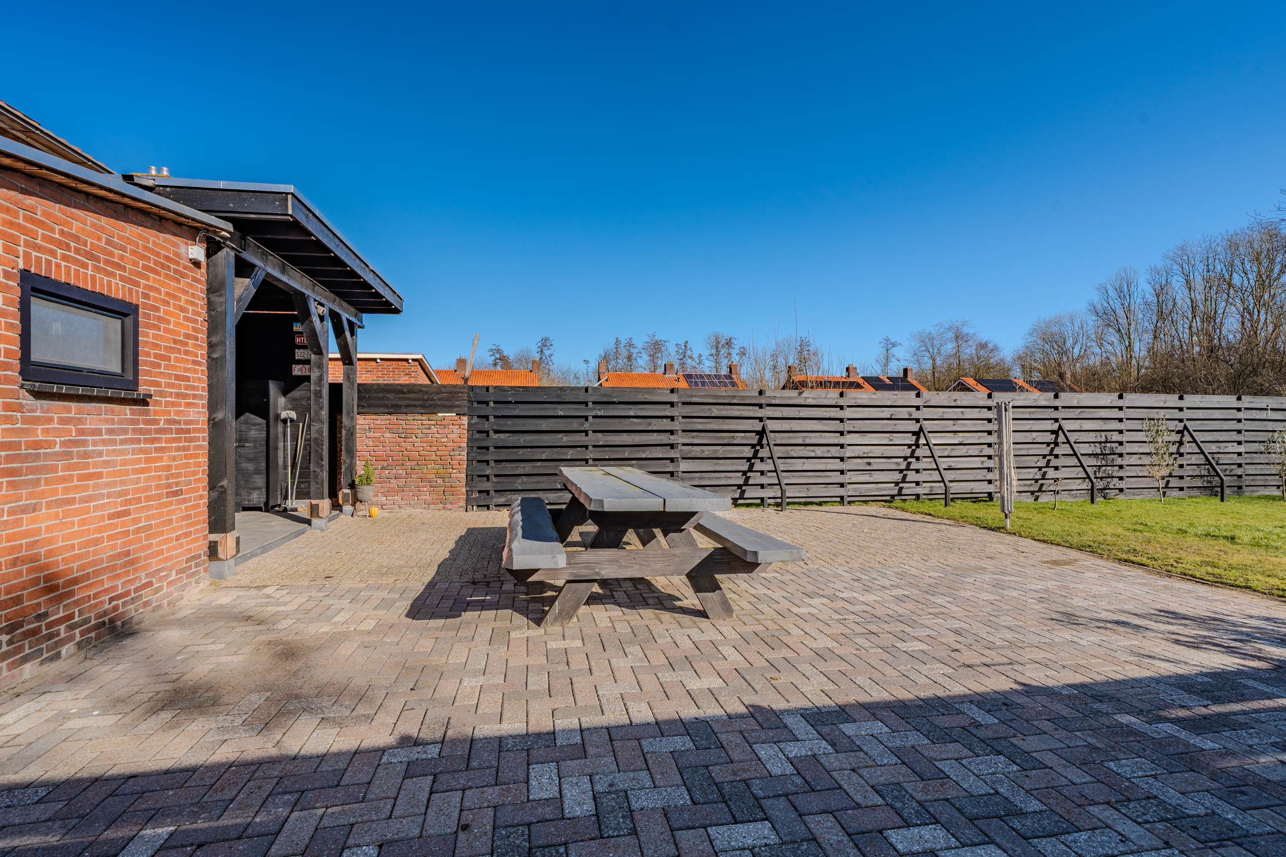 De voor-zij en achtertuin zijn netjes verzorgd voorzien van zonneterras met veranda, houten schuttingen en metalen poort en ruime oprit met mogelijkheid voor een garage.