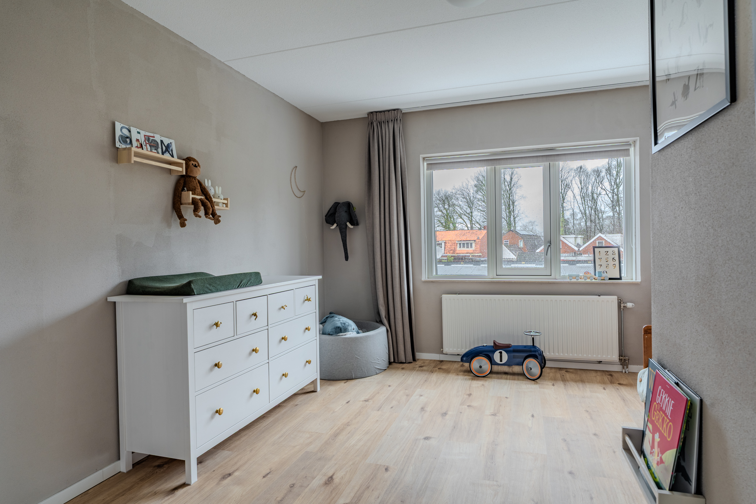 Multifunctionele mooi afgewerkte ruimte voorzien van CV-en WTW opstelling met mogelijkheid tot het eenvoudig realiseren van twee extra slaapkamers.
