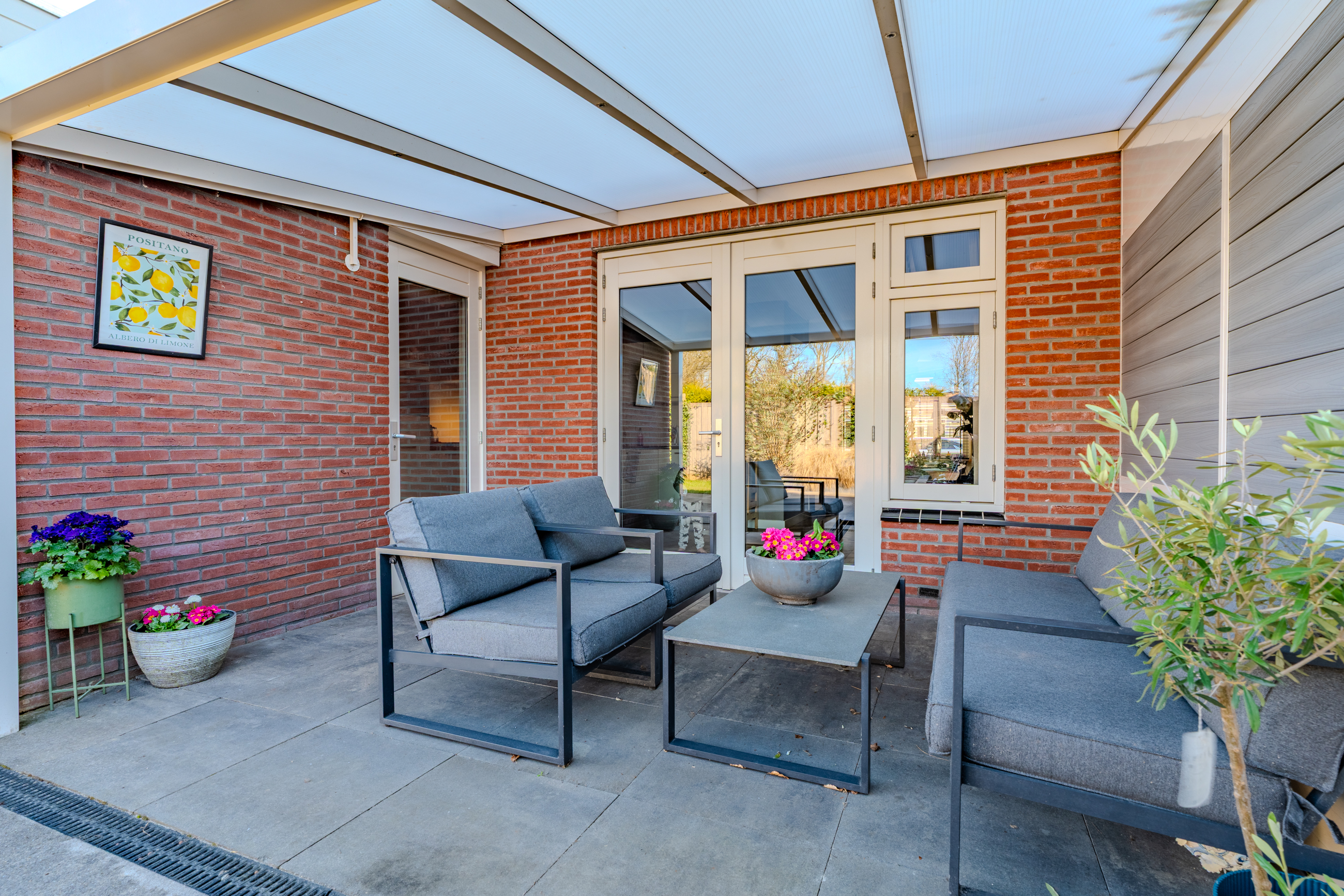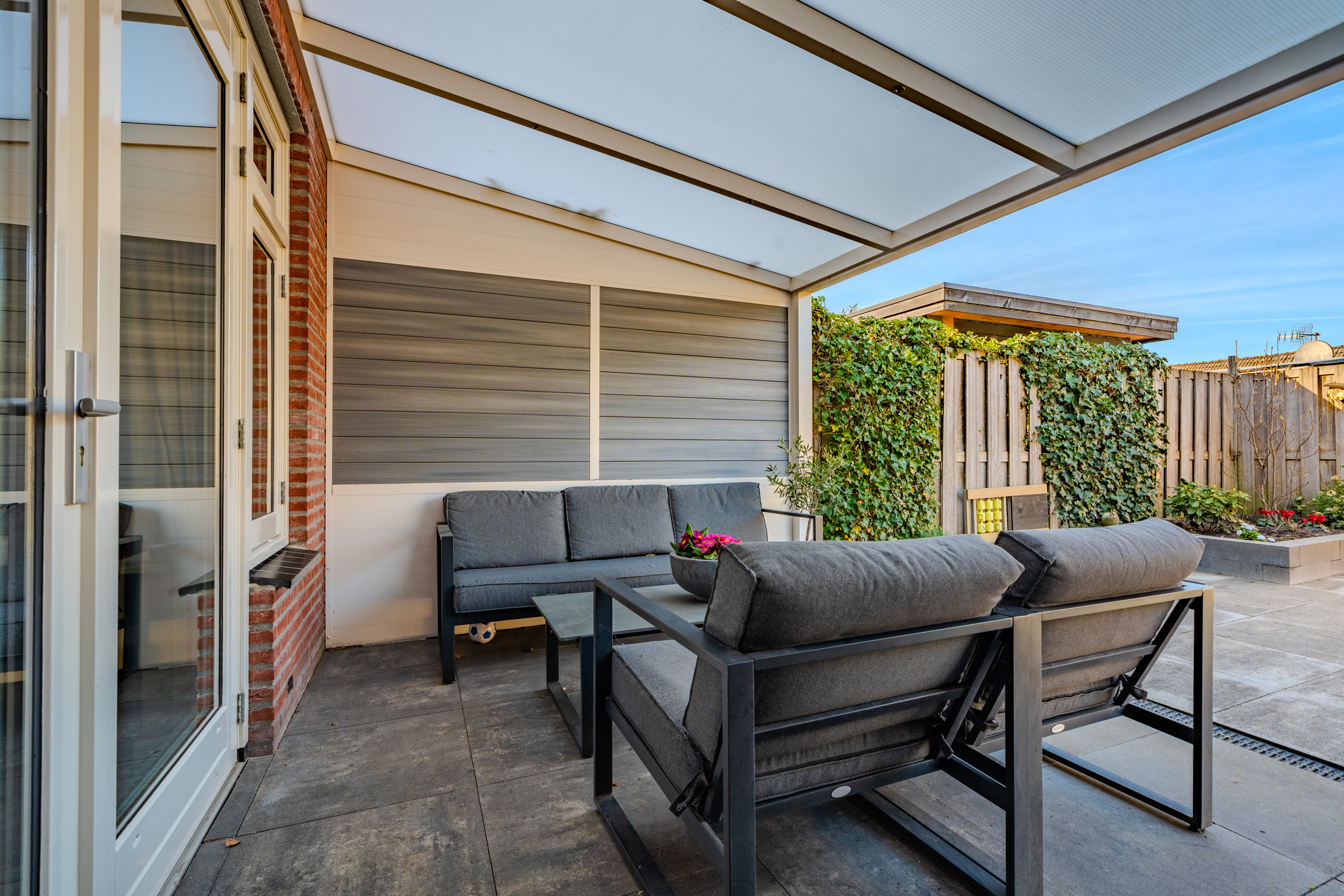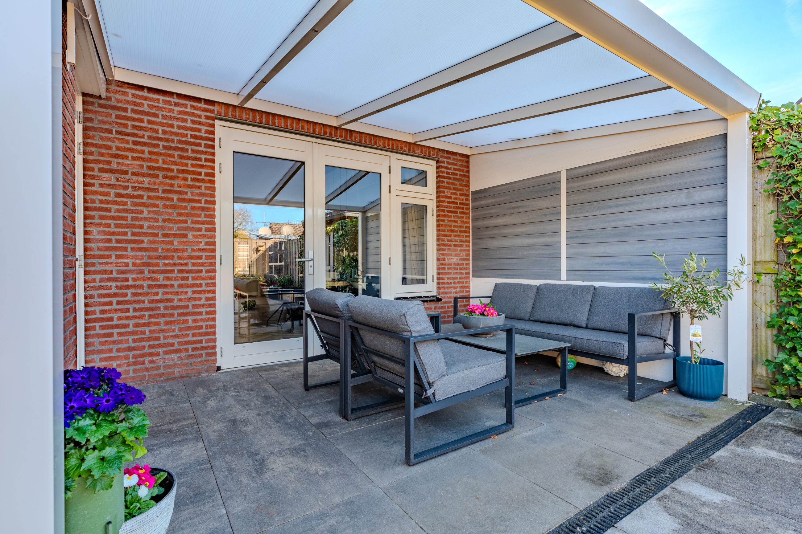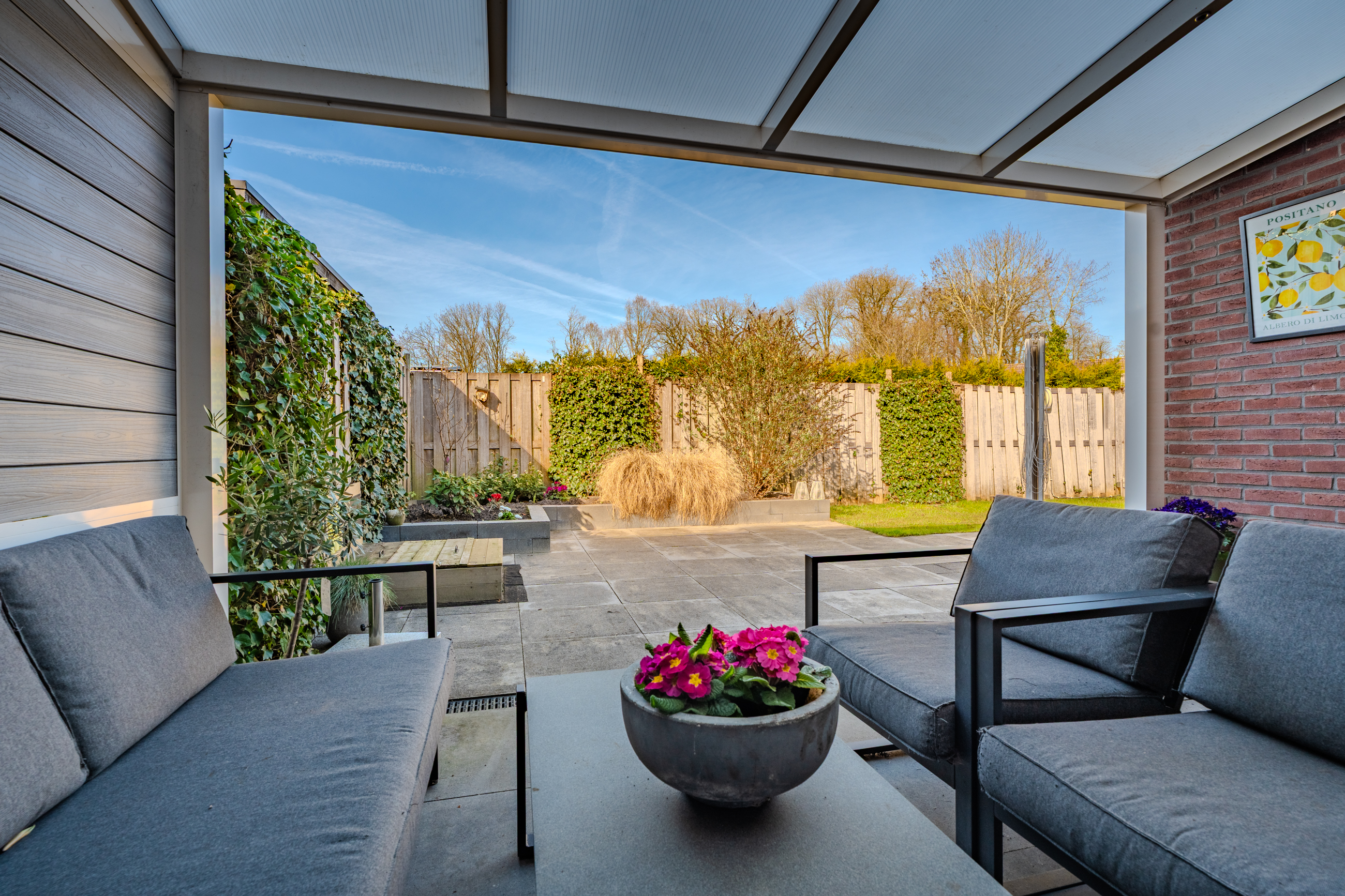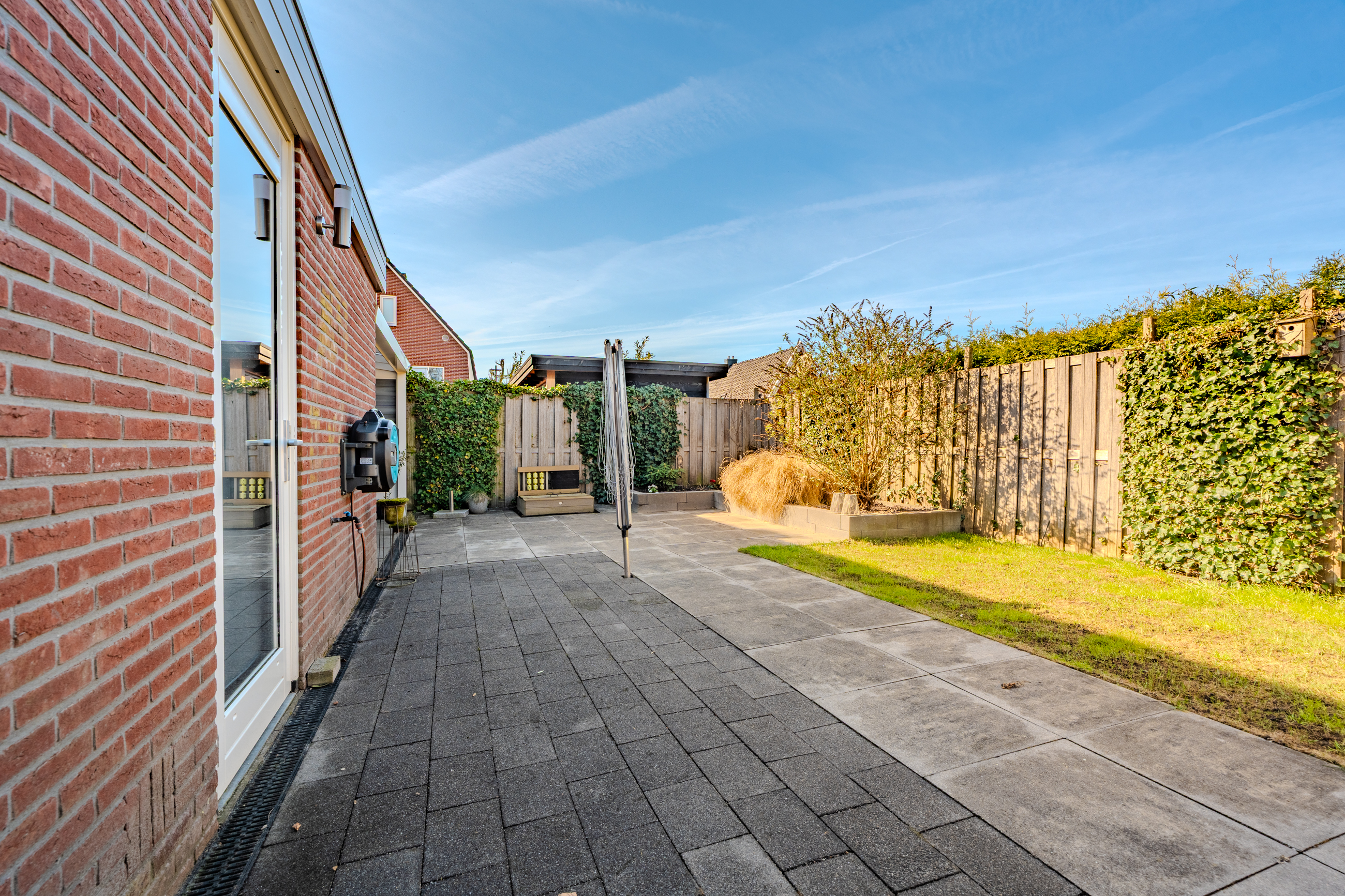 De voor-en achtertuin zijn netjes en verzorgd, achtertuin voorzien van zonneterras en prachtige overkapping aan het huis.