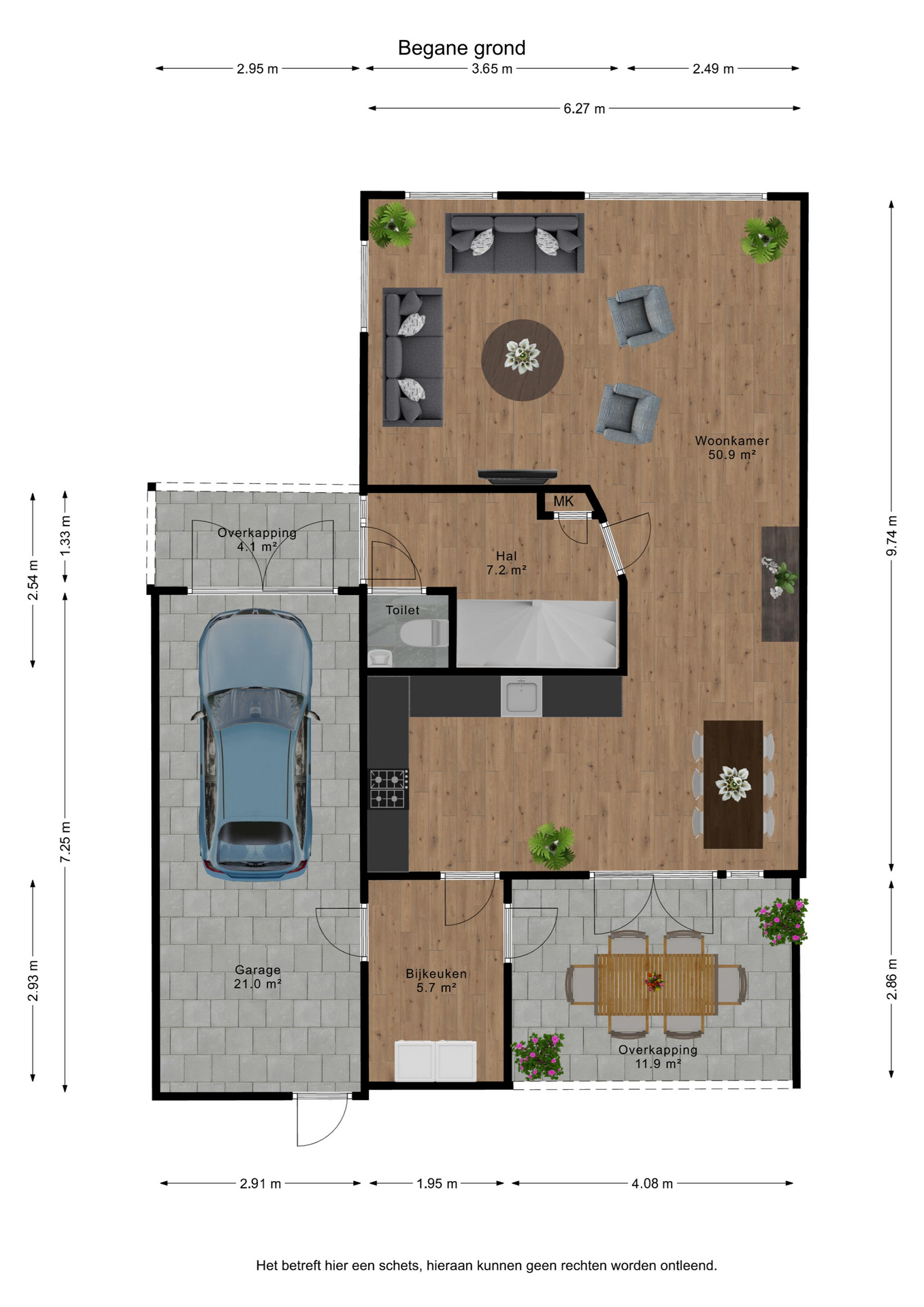 -Verzorgde tuinen met overkapping aan het huis;