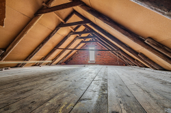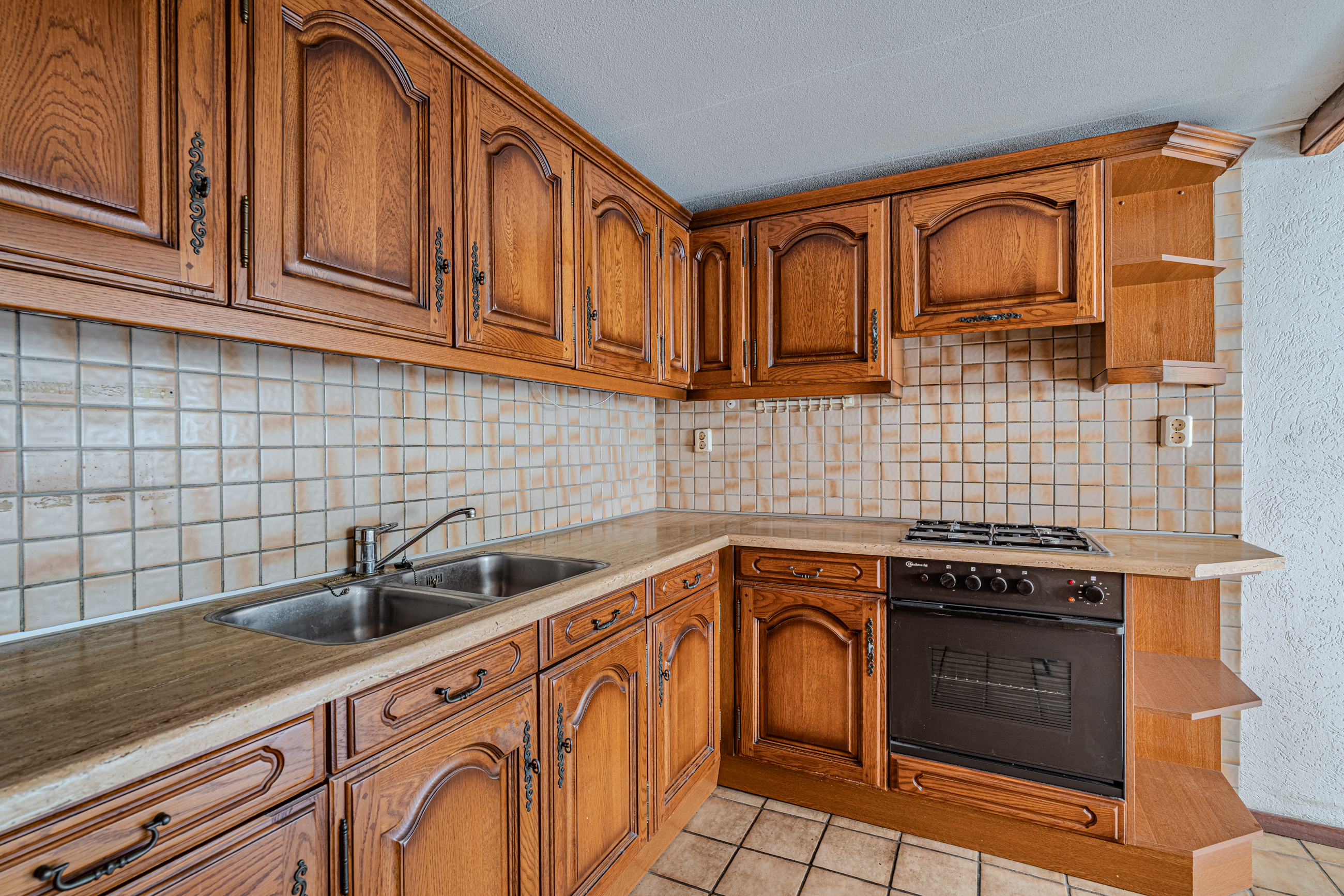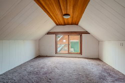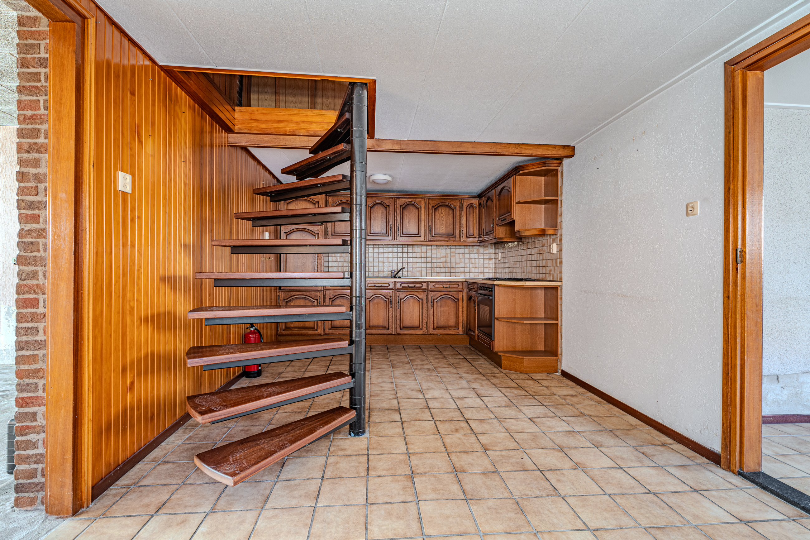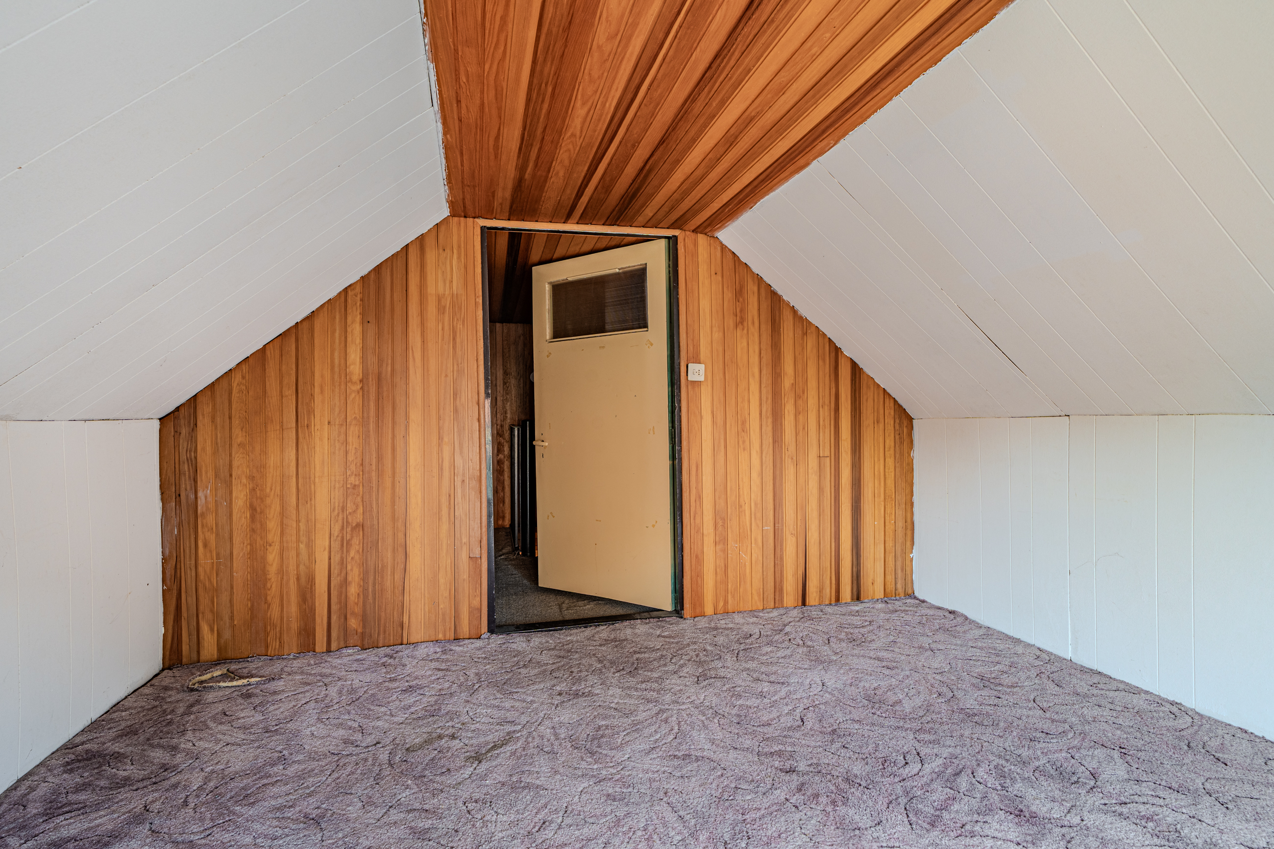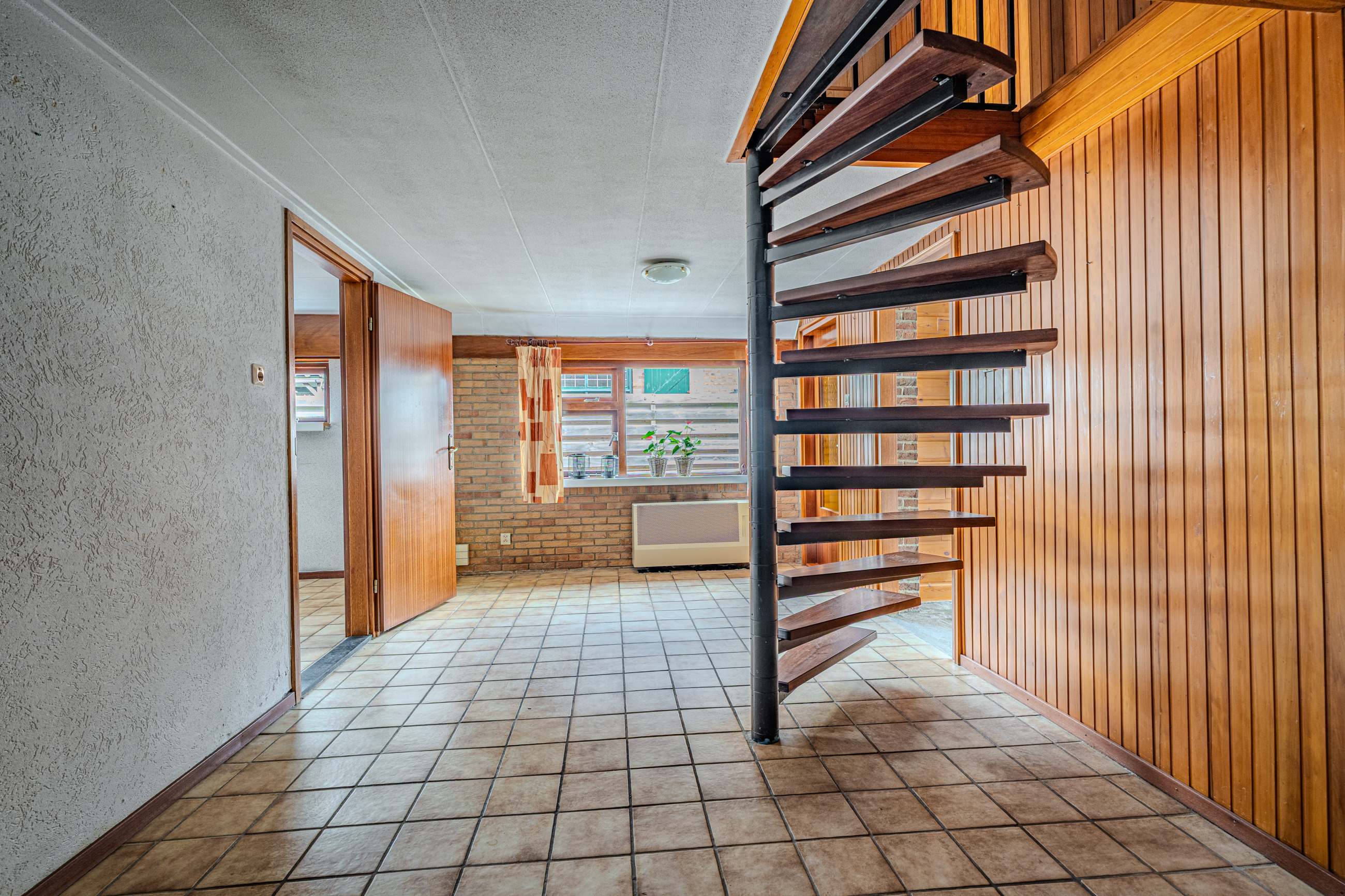 Via de trap in de keuken komen we op de overloop van de eerste verdieping, hier bevinden zich de bergzolder en de slaapkamer.