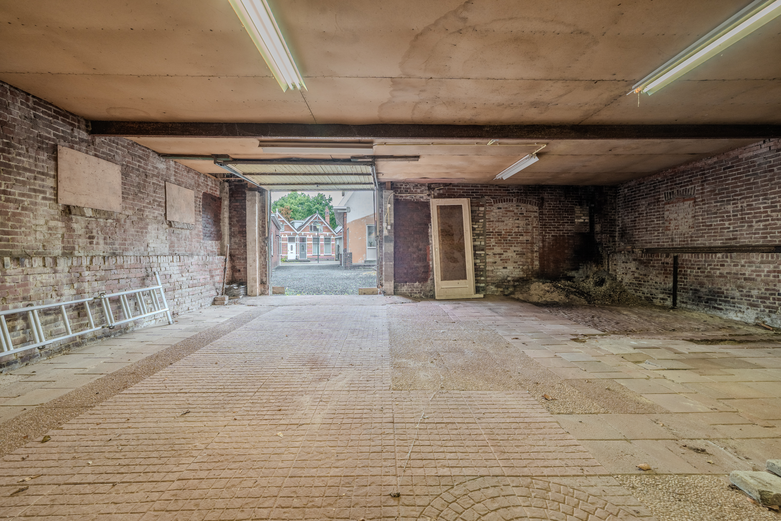 Aan de achterzijde van het huis bevinden zich de tuin, de stenen dubbele garage en schuren met een totale oppervlakte van c.a. 240 m2 met alle mogelijkheden voor ruimte vergende hobby's.