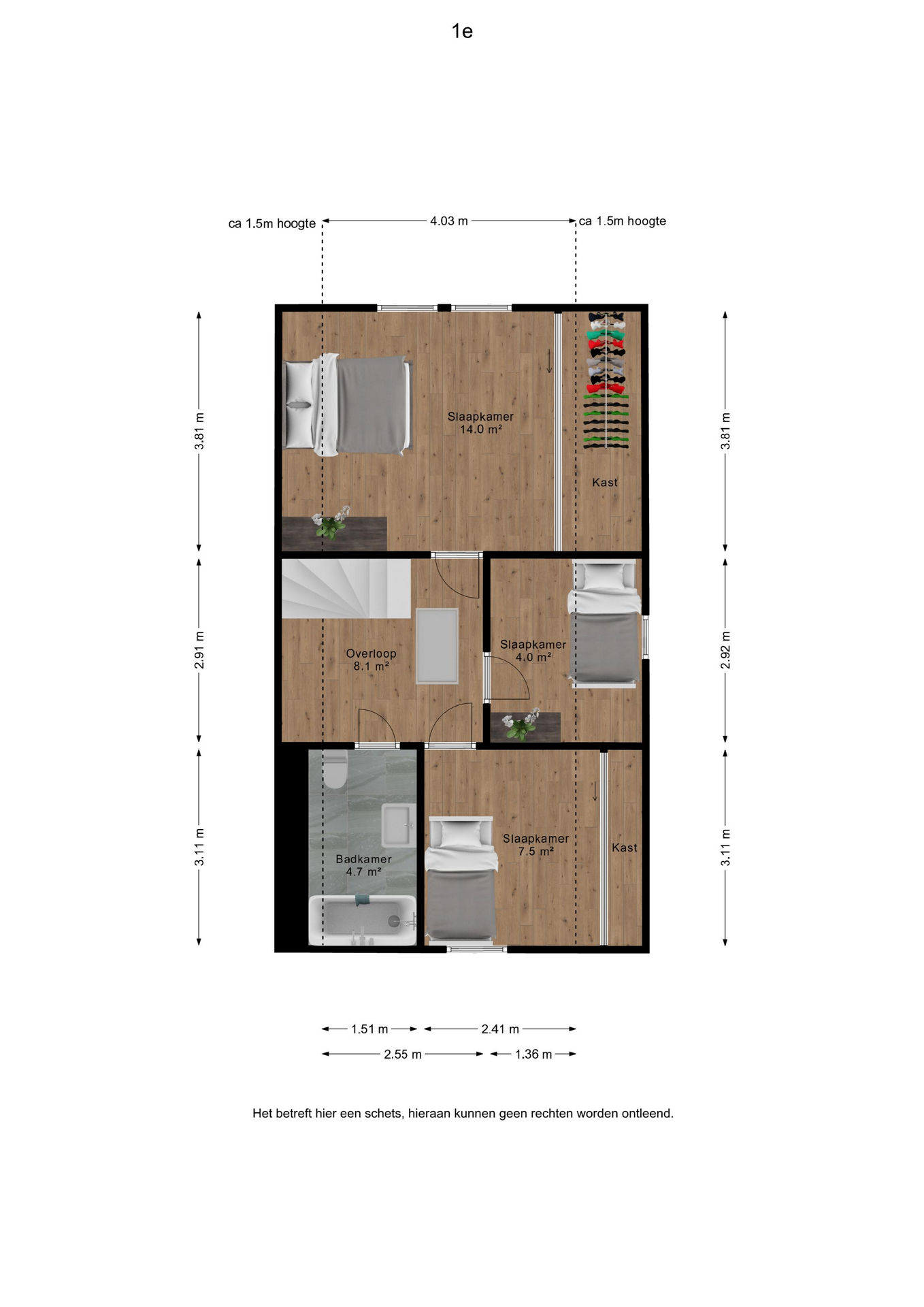 Middels de vlizotrap op de overloop komen we op de beloopbare ruime bergzolder.